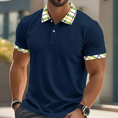 Per uomo Maglia da golf Polo Piqué Casuale Affari Classico Manica Corta Moda Essenziale Tinta unica Plaid Bottoni Estate Primavera Primavera Autunno Vestibilità regolare Bianco Giallo Blu marino