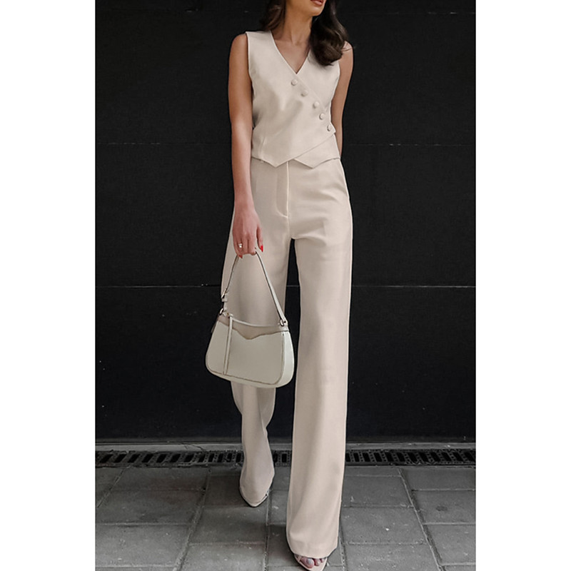 Women's Active Basic Linen-Inspired Sets Two Piece Sets Blouse Sleeveless V Neck Solid Color Holiday Casual Daily Black Beige Summer Regular Fit