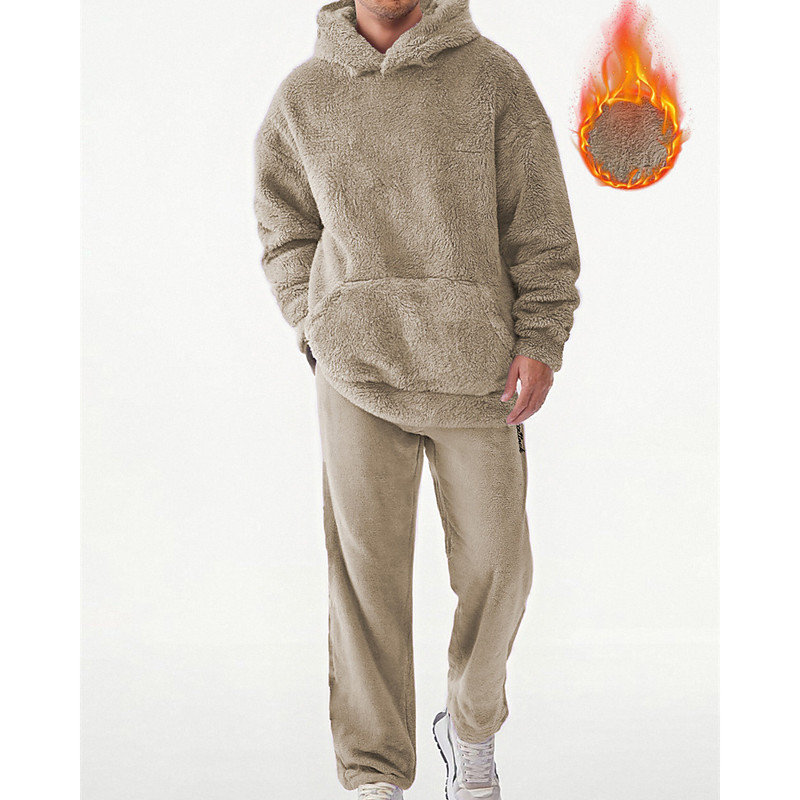 Men's 2-Piece Fleece Tracksuit Set - Heavyweight Hoodie and Joggers Sweatshirt Outfit Solid Color Sports Streetwear with Pockets