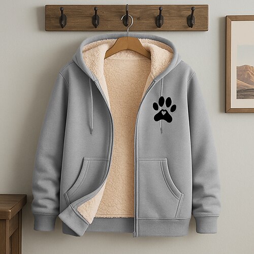 Per uomo Felpa con cappuccio a zip intera Felpa con cappuccio e zip Giacca in Pile Felpa con cappuccio in pile Aalbicocca Nero Vino Rosso Blu Con Cappuccio Semplice Stampe Grafiche Zampa Cerniera