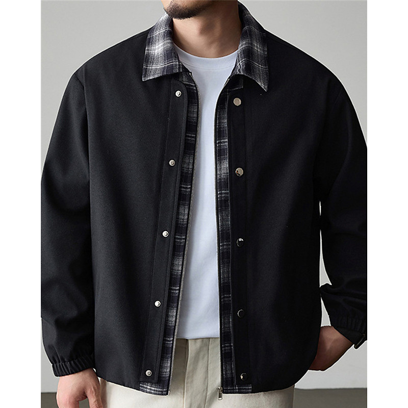 Men's Jacket Casual Jacket Vacation Daily Warm Pocket 2 in 1 Fall Winter Plaid Fashion Classic Lapel Regular Black Khaki Jacket