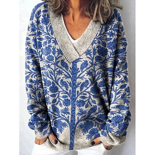 Per donna Cardigan Quotidiano Floreale Grafico Geometrico A Coste Scollo a V Bottoni Stampato Manica Lunga Top Regolari Maglia All'aperto Weekend Blu marino Blu Reale Primavera Autunno