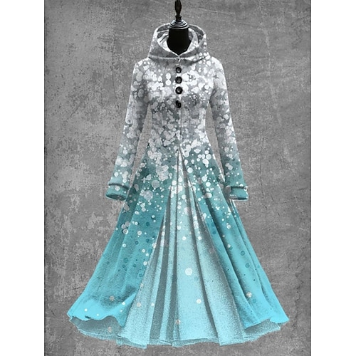 Per donna Abito maxi Abito a trapezio Casual Quotidiano Vestibilità regolare Floreale Manica Lunga Con Cappuccio Blu reale Blu Azzurro cielo Verde Primavera Autunno