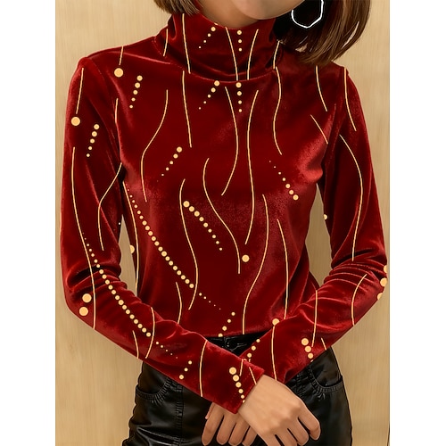 Per donna Maglietta Grafico Geometria Elegante Vintage Moda Manica Lunga Dolcevita Top Regolari Quotidiano Uscire Weekend Stampato A Strati Vino Blu Reale Viola Verde Autunno