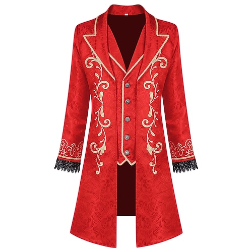 Retrò Vintage Rococò Medievale Cappotto Smoking Frac Lunghe Costume Per uomo Reale Halloween Carnevale Feste LARP Fiera Rinascimentale Adulti Cappotto