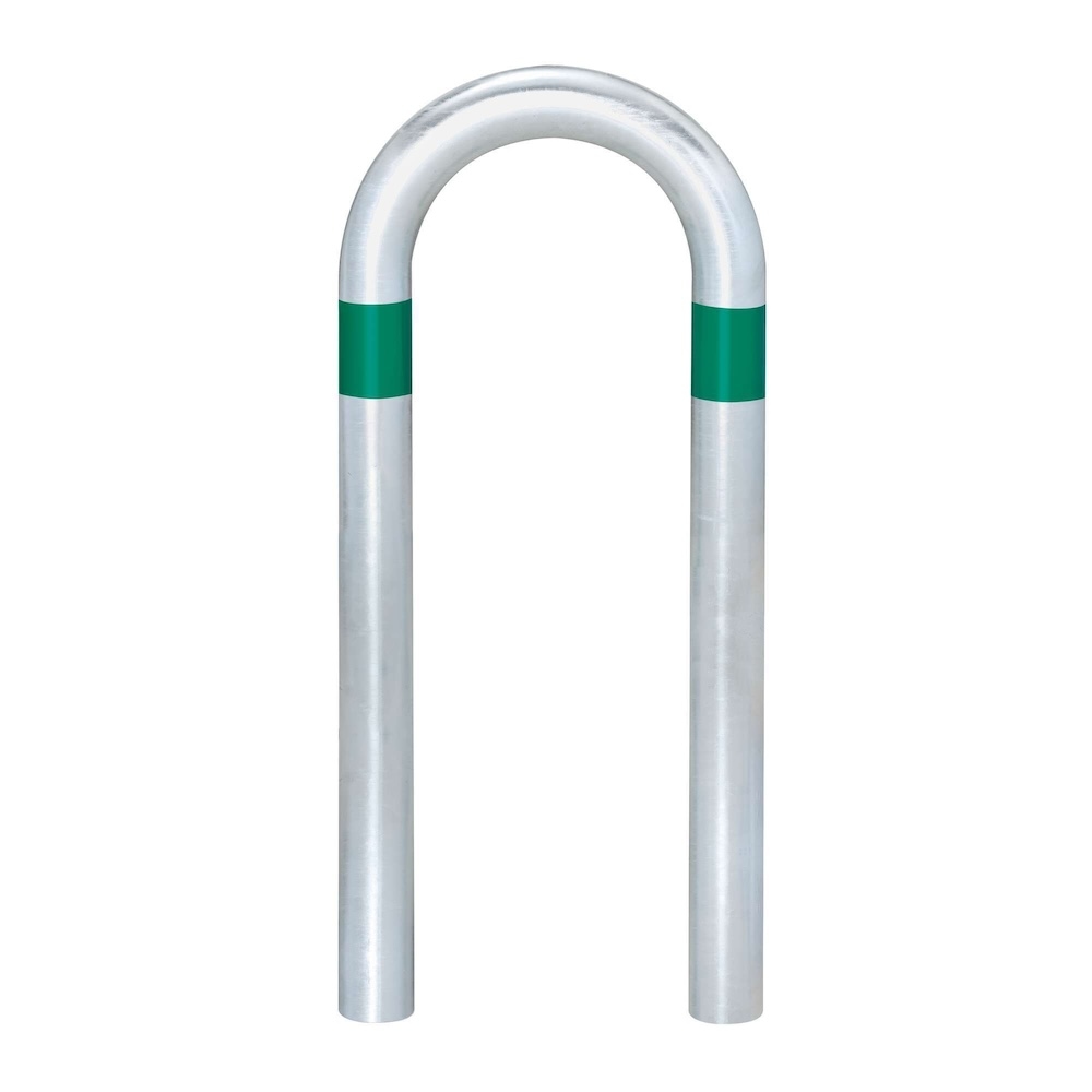PROREGAL Reflektierender Stahlschutzbügel CITY mit grünen Streifen | Ladesäulen-Schutz zum Einbetonieren | HxBxT 80x36x16cm | Rohr-Ø 6cm | Silber/Grün