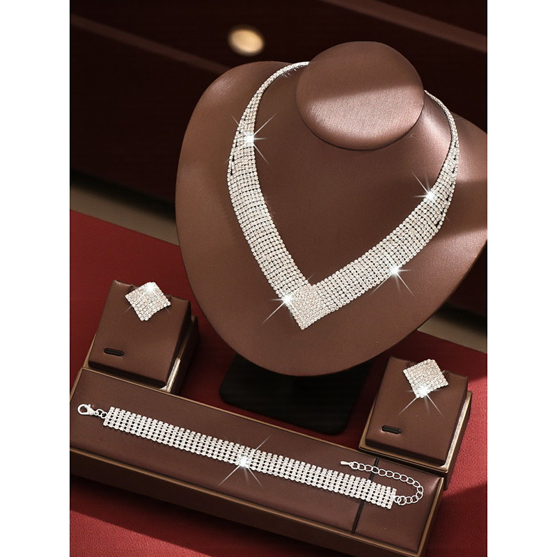Women's Gold Rhinestone Jewelry Set - Sparkling Statement Necklace, Bracelet Earrings, Glamorous Party Accessories for Weddings, Evenings Special Events