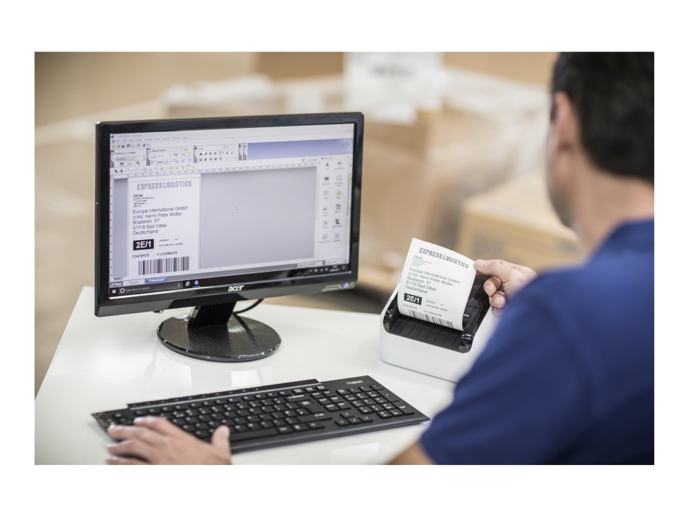 Brother QL-1110NWBc - Etiketprinter - direkte termisk - Rulle (10,36 cm) - 300 x 300 dpi - op til 110 mm/sek. - Bluetooth 5.2, USB, LAN, Wi-Fi(n) - skærer - sort, hvid