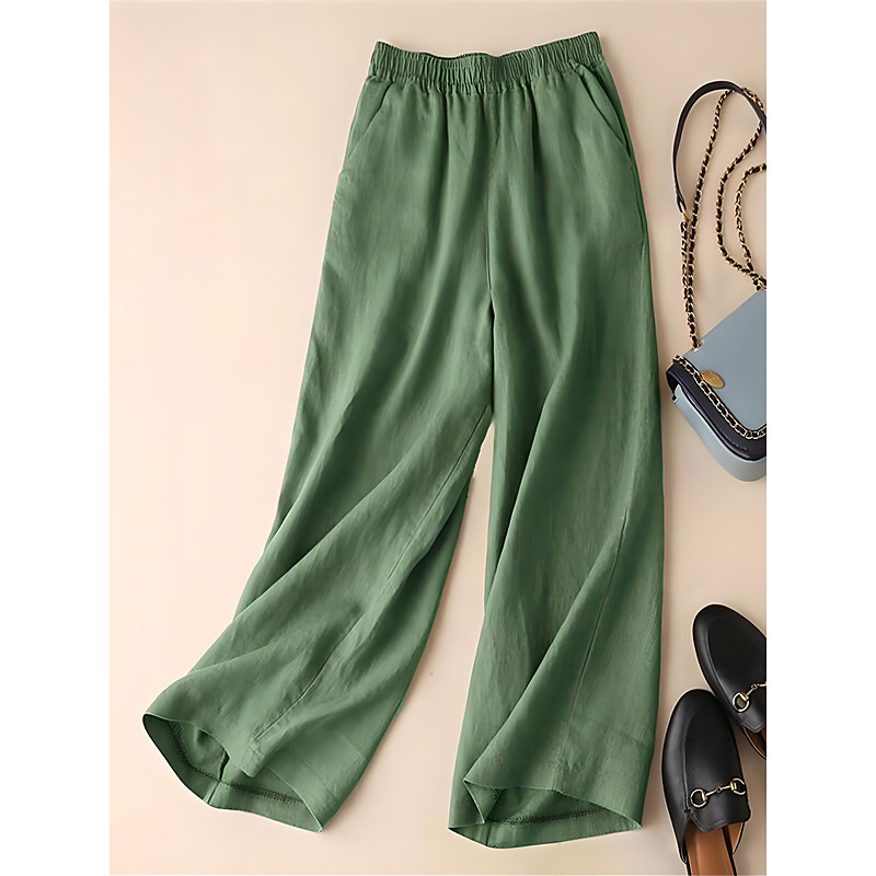 Women's Faux Cotton Linen Wide Leg Chinos Fashion Streetwear Simple Ankle-Length High Waist Plain Maillard Pocket Elastic Waist Baggy Comfort Breathability Soft Micro-elastic Daily Vacation Daily Wear