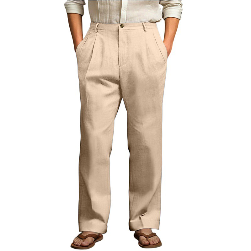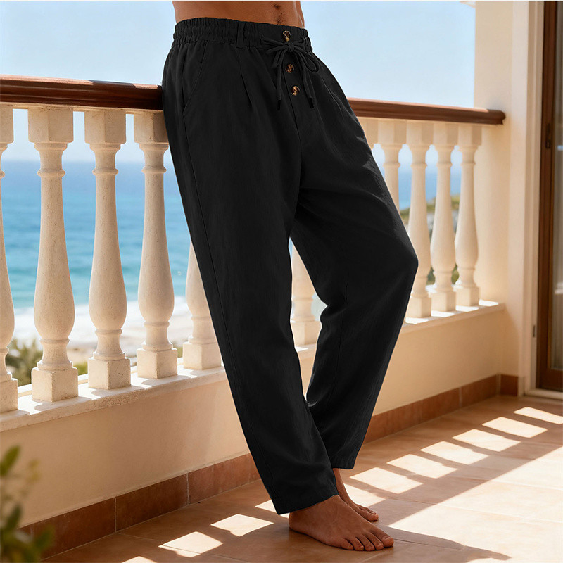 Men's Cotton Linen Pants Trousers Summer Pants Baggy Pants Beach Pants Pocket Solid Color Comfort Breathable Daily Outdoor Beach Vacation Fashion Black White Inelastic