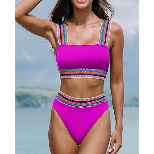 Per donna Costume da bagno a due pezzi Bikini a vita alta con volant Tinta unita Elastico Senza Maniche Costume da Bagno Surf Spiaggia Vacanze Estate