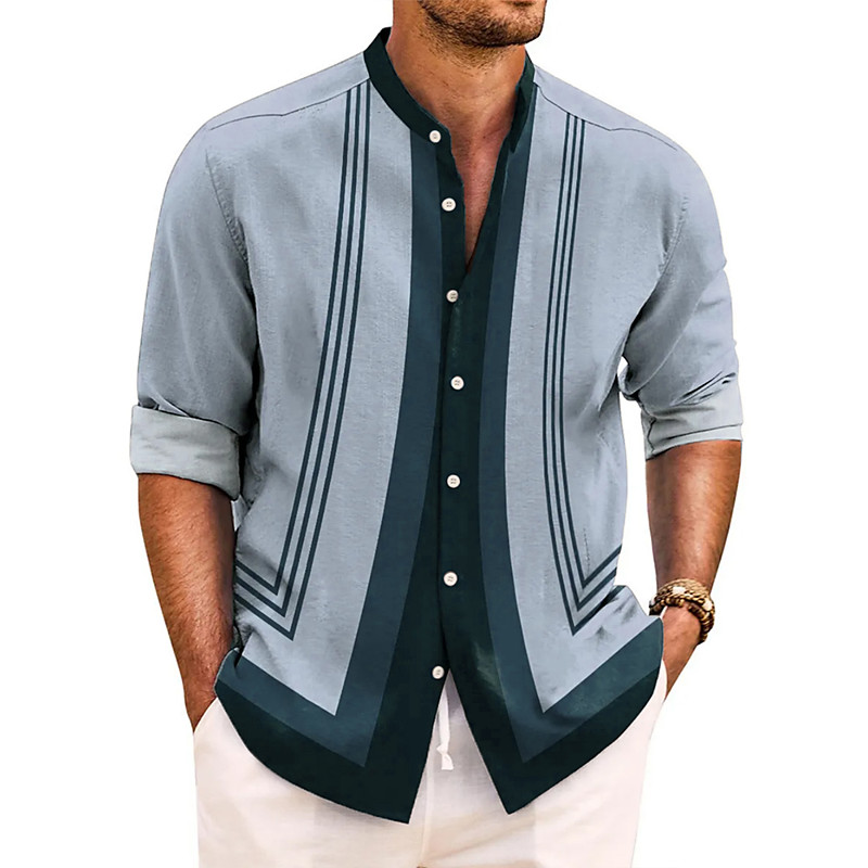Men's Geometric Gradient Color Shirt Stand Collar Shirt Long Sleeve Fashion Casual Dailywear Holiday Spring Fall Mandarin Collar Band Collar 3D Print Button Up Shirts Blue Purple Green Khaki