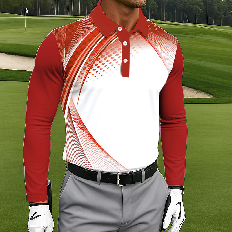 Men's Line Polo Shirts Golf Shirt Long Sleeve Polo Shirts Collared Shirts Business Casual Office Dailywear Outdoor clothing Buttons 3D Print Spring Summer Black Red Blue