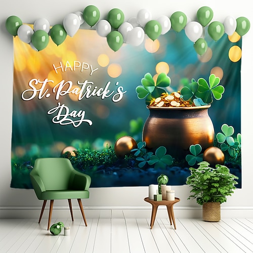Festa di San Patrizio arazzo Striscioni Coperta Elfo Moneta d'oro Carino Romantico 3D Camera da letto Soggiorno Dormitorio Stanza per adolescenti Dormitorio universitario Portico a muro Arredamento