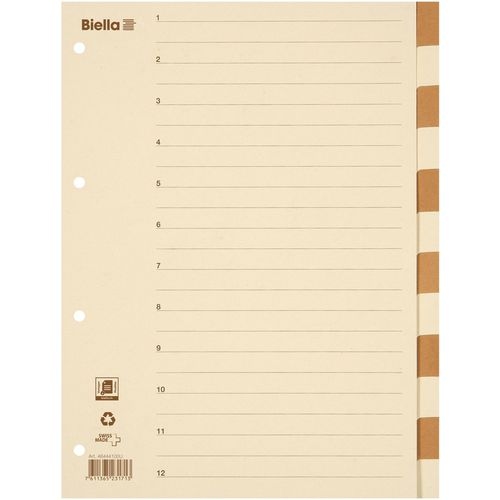 Biella Blanko Register DIN A4 Braun, Beige 12-teilig Pappkarton 4 Löcher