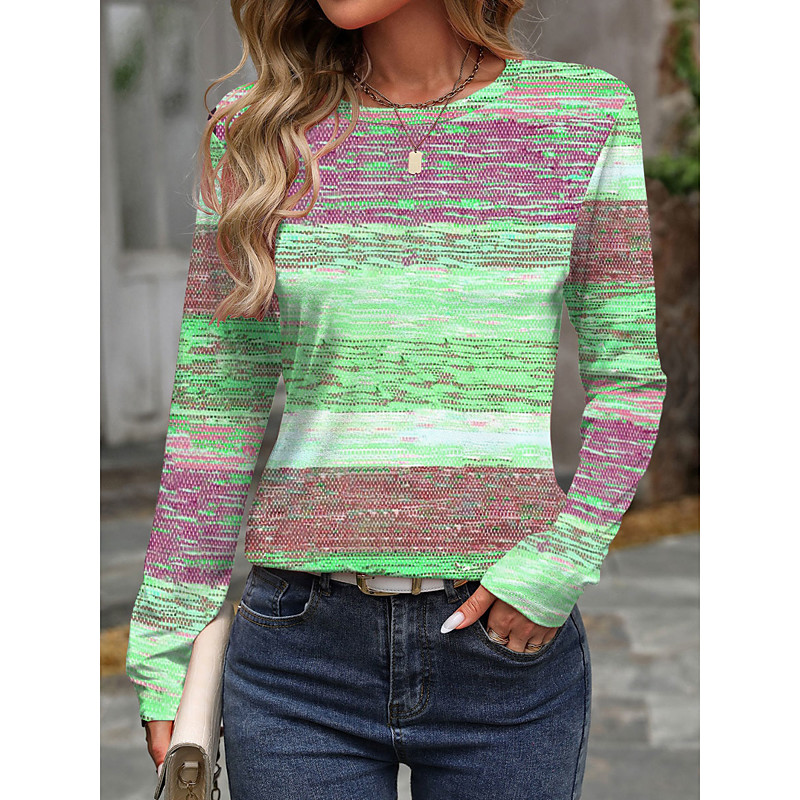 Women's T shirt Long Sleeve Crew Neck Long Sleeve Tunic Ombre Casual Regular Tops Daily Print Pink Blue Purple Green Spring Fall Prefall