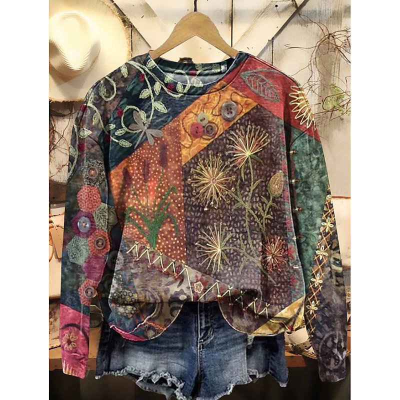 Women's Pullover Sweatshirt Floral Graphic Fashion Casual Long Sleeve Crew Neck Regular Tops Street Dailywear Casual Print Maroon Orange Brown Khaki Fall Winter