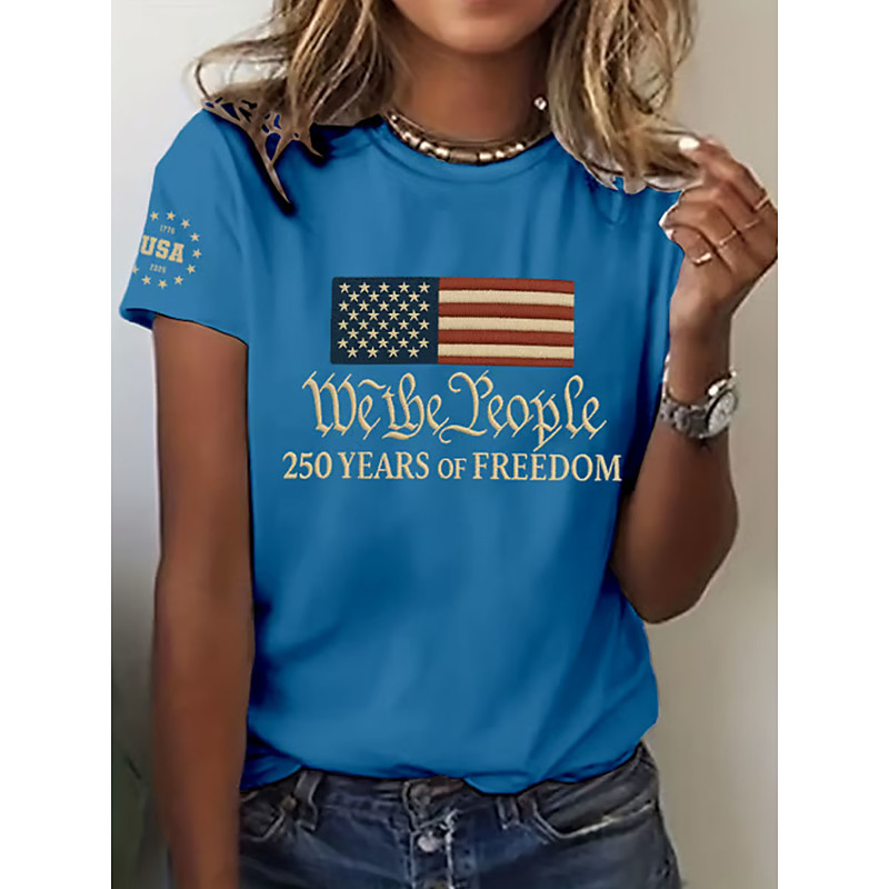 Women's T Shirt Graphic Letter Vintage Fashion Stylish Short Sleeve Crew Neck Regular Tops Daily Weekend Print Blue Black White Red Summer Spring Fall Winter
