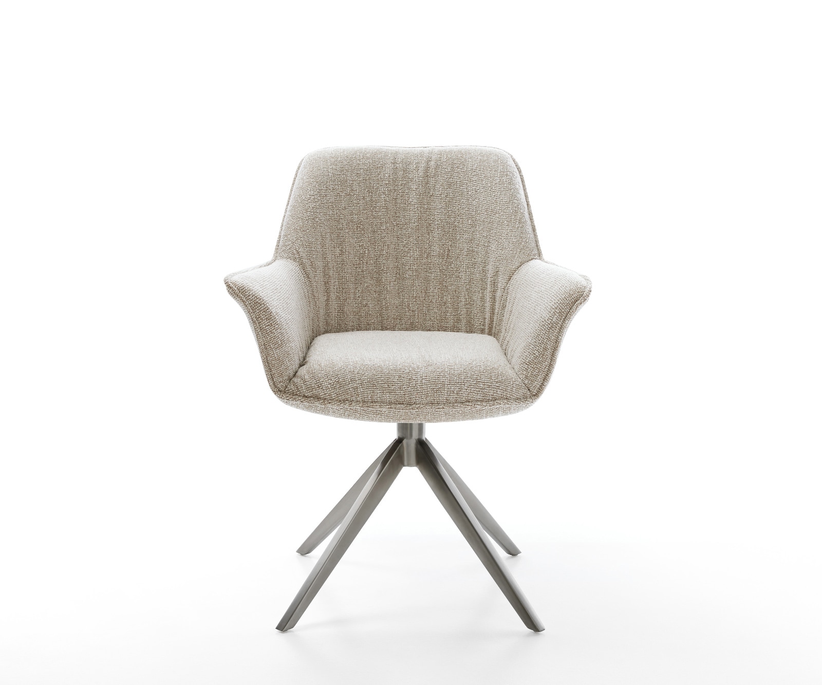 DELIFE Draaistoel Yago-Flex met armleuning bouclé zacht beige kruisframe breed wit 360° draaibaar rocker-functie pocketveer kern