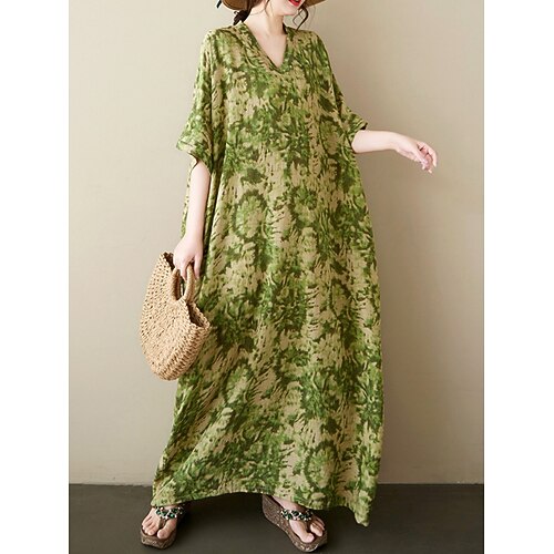 Per donna Abito maxi Abito a trapezio Casual Quotidiano Vestibilità comoda Floreale Manica Corta Scollo a V Blu Giallo Rosa Verde Primavera