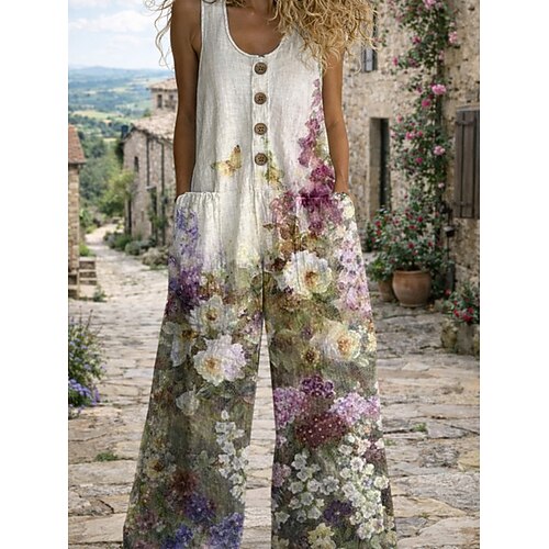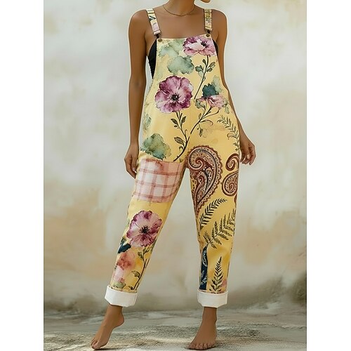 Per donna Salopette Attivo Floreale Senza Maniche Senza maniche Dritto Collo quadrato Tasca con tasca Vacanza Quotidiano Vestibilità comoda Rosa Viola Cachi Estate