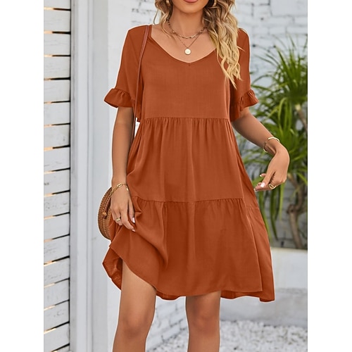 Per donna Mini Abito Vestito Casual Classico Vacanza Data Uscire Vestibilità comoda Semplice Manica Corta Scollo a V Nero Verde scuro Cammello Grigio Estate