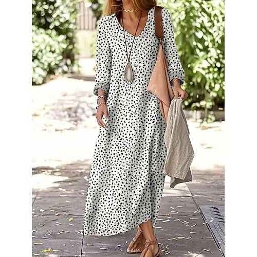 Per donna Abito Midi Vestito T-Shirt Casual Vestibilità comoda Floreale Grafico A Pois Manica Lunga Scollo a V Blu Bianco Rosa Arancione Estate Primavera