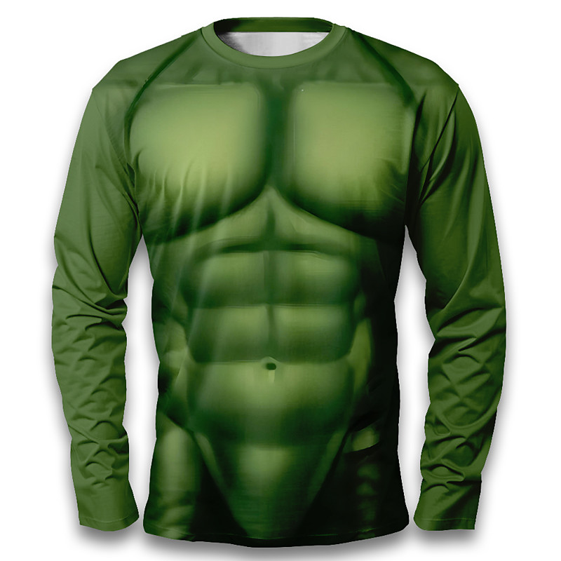 Men's Muscle Simulation Costume T Shirt Long Sleeve T shirt 3D Print Crew Neck Shirt Fashion Exaggerated Street Casual Daily Burgundy Green Gray Summer Spring Fall Clothing Apparel S M L XL XXL XXXL
