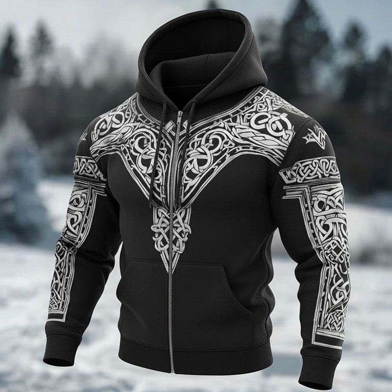 Men's Optical Illusion Celtics Hoodie Jacket Sweatshirt Viking 3D Fantasy All Over Print Long Sleeve Zip Streetwear Vacation Going out Blue Brown Green Gray Zipper Fall Winter Designer S M L XL XXL