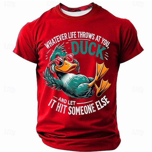 T-shirt grafica da uomo maniche corte divertente citazione del'anatra 'Qualsiasi cosa la vita ti riservi abbatti e lascia che colpisca qualcun altro'