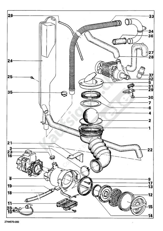 Ersatzteil zu Miele W 697 WASSERABLAUF (Teile Nr. 5-7 auf der Abbildung)