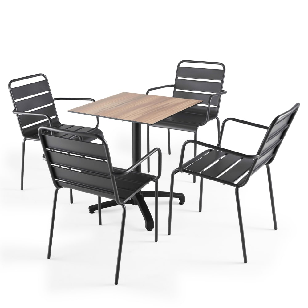 Tavolo da giardino in laminato di quercia scura e 4 sedie grigie