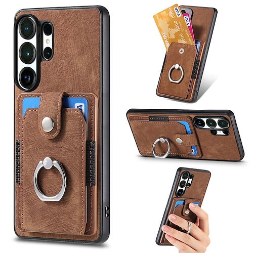 Handy Hülle Handyhüllen Für Samsung Galaxy S26 S26 Plus S26 Ultra Rückseite Mit Ständer Kartenfach Ringverschluss Retro TPU PU-Leder