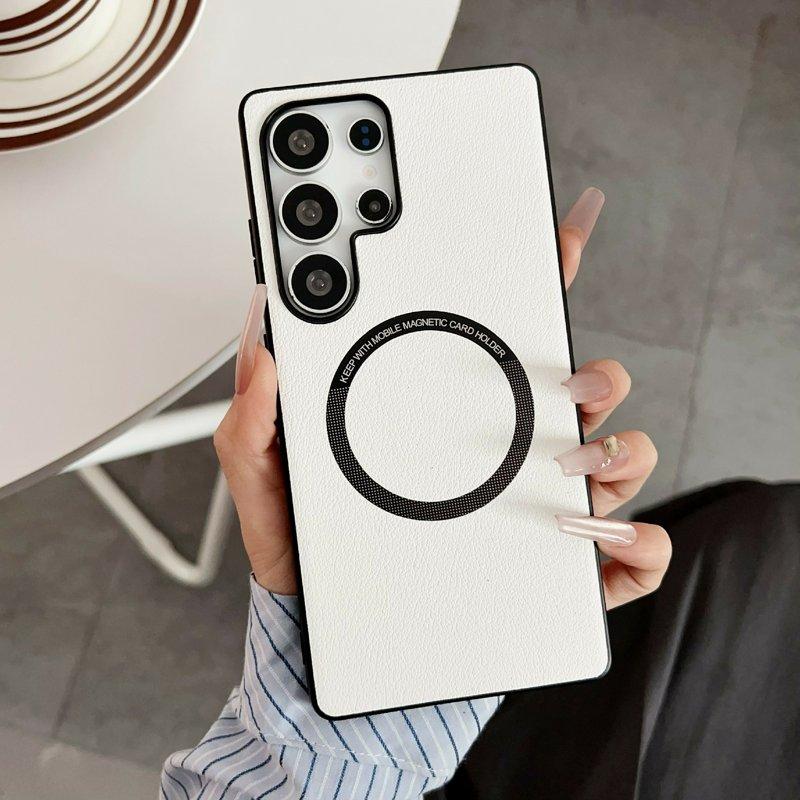 Mobilskal för Samsung Galaxy S26 Ultra Magnetiskt Konstläder + PC - Vit