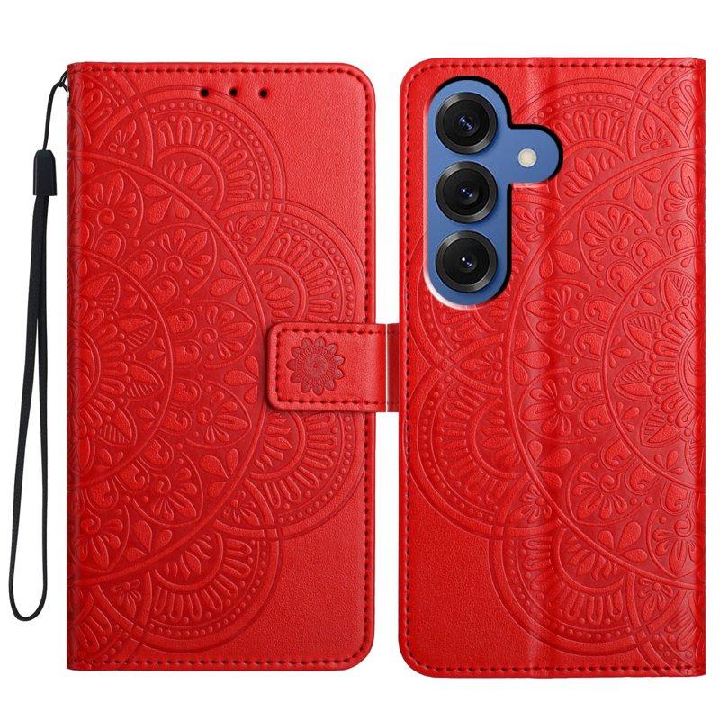 Galaxy S26 Edge Plånboksfodral Litchi Konstläder med Rem - Röd
