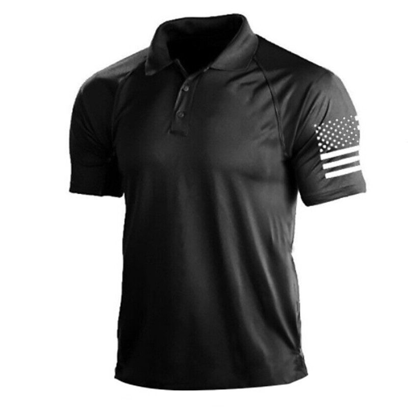 Men's Outdoor American Flag Tactical Sport Golf Neck T-Shirt Golf Shirt Tee shirt Short Sleeve Shirt Top Outdoor Breathable Quick Dry Lightweight Summer Black Green Grey Hunting Fishing Combat