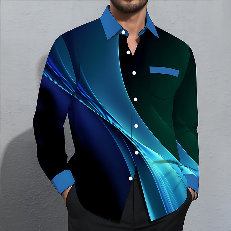 Men's Geometric Gradient Color Line Shirt Button Up Shirt Long Sleeve Fashion Casual Vacation Daily Streetwear Spring Fall Turndown 3D Print Collared Shirts Front One Pocket Black Grey Black / Green