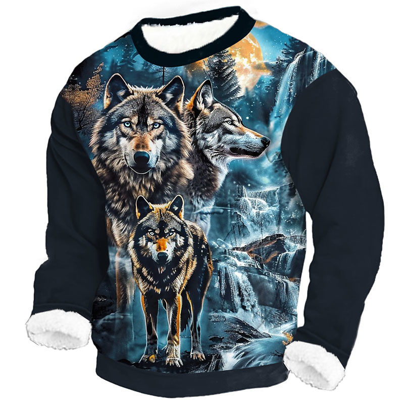 Men's Wolf Fleece Sweatshirt Daily Casual 3D Crew Neck Home Party Gift Streetwear Blue Black Dark Blue 3D Print Fall Winter Designer S M L XL XXL XXXL