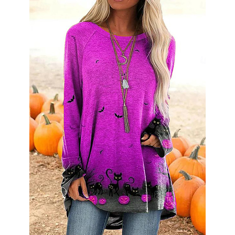 Women's T shirt Pumpkin Long Sleeve Graphic Vintage Stylish Casual Long Sleeve Crew Neck Long Tops Daily Print Black White Yellow Orange Spring Fall Prefall