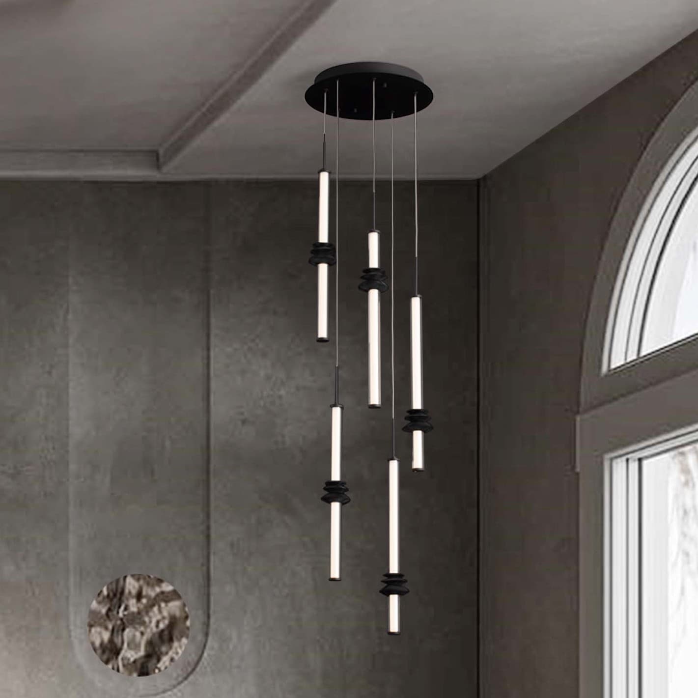 Nova Luce Stalactite - hanglamp - Ø 35 x 210 cm - 32W dimbare LED incl. - zandzwart