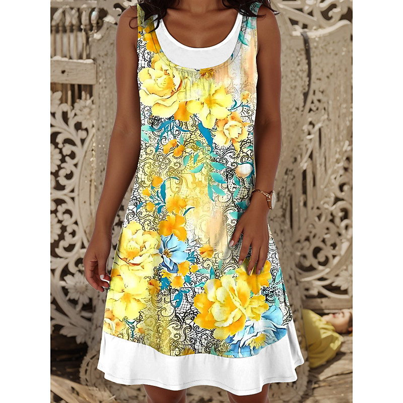 Women's Mini Dress T Shirt Dress Tee Dress Sundress A Line Dress Vacation Casual Daily Regular Fit Floral Graphic Sleeveless Crew Neck Yellow Blue Green Summer Spring Fall
