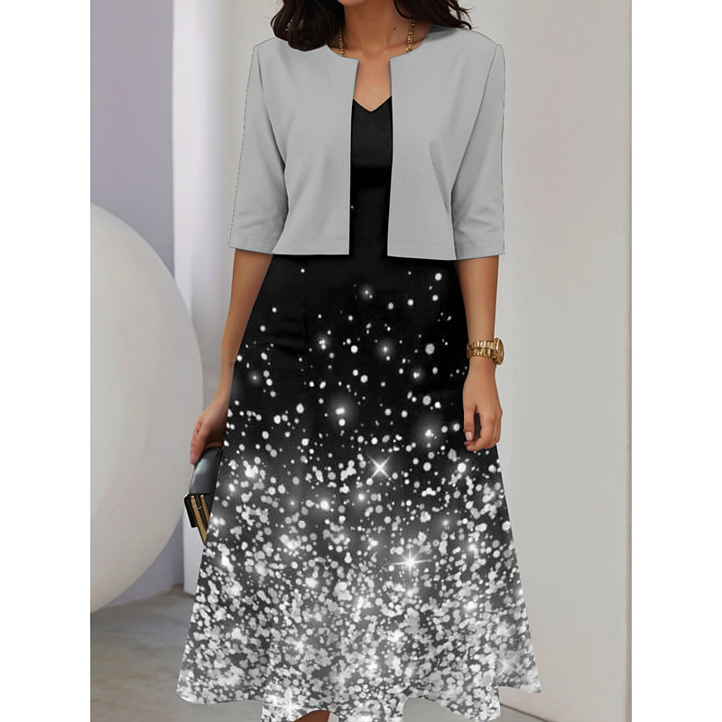 Women's Dress Set A Line Dress Midi Dress Elegant Casual Ombre Graphic Patchwork Print Midi Dress Half Sleeve V Neck Vacation Date Pink Blue Purple Summer Spring Regular Fit