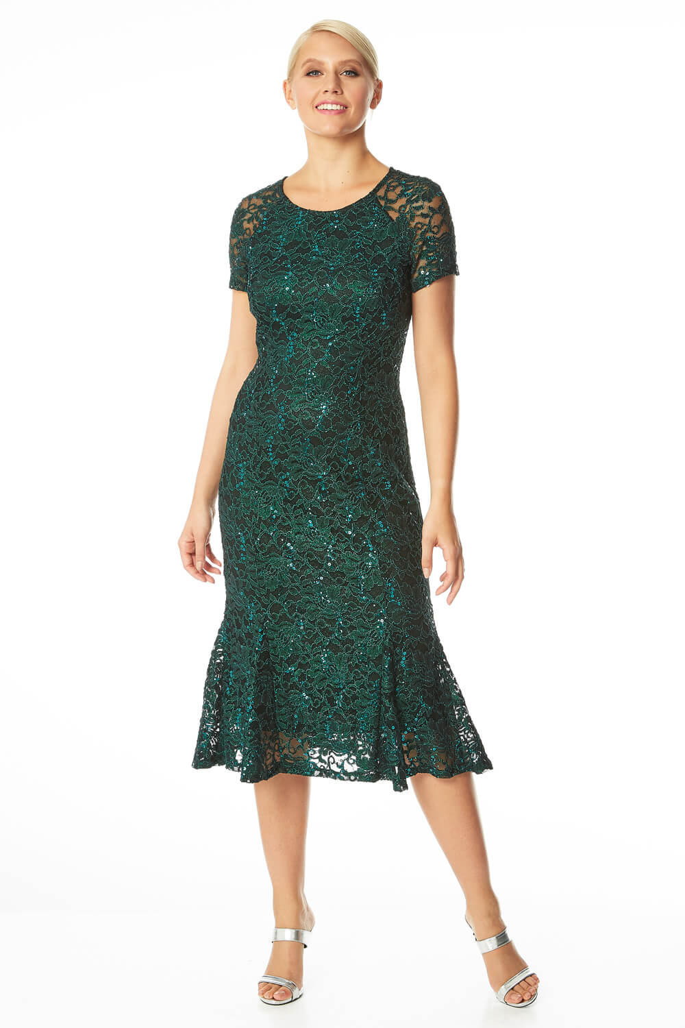Roman Womens Metallic Lace Sequin Midi Dress - Green - Size 18 UK | Roman Sale | Discount Designer Brands