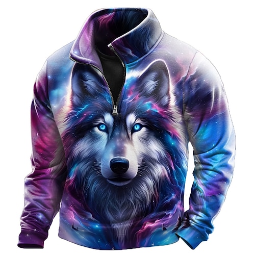 Per uomo Lupo Stampa 3D Felpa Sport Moda Casual Da caccia Manica Lunga Con cerniera All'aperto Feste Abbigliamento casual alla moda Nero Blu Marrone Marrone 2 Marrone 3 Autunno Tutte le stagioni
