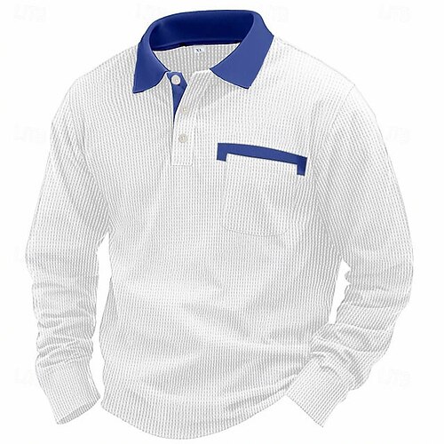 Per uomo Magliette Polo a Nido d'Ape Testurizzato Casuale Classico Manica Lunga Sport Moda Testurizzato Tasca Autunno Vestibilità regolare Blu Marrone Scuro Bianco Nero Borgogna Blu marino Magliette