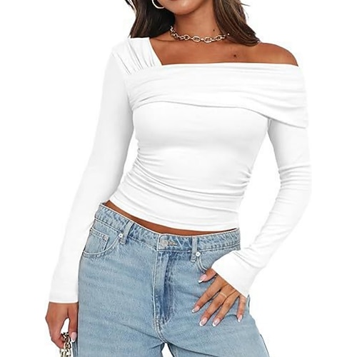 Per donna Top Eleganti Top attillati Tinta unica Semplice Elegante Signore Classico Manica Lunga Collo Alto Top Regolari Lavoro Quotidiano Uscire Tunica Drappeggiato Nero Bianco Grigio chiaro