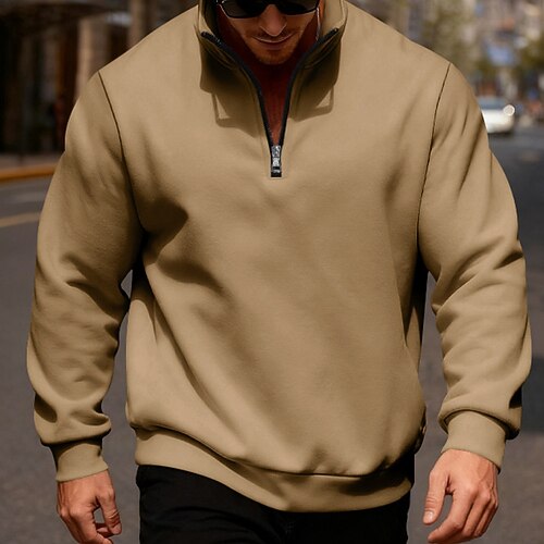 Per uomo Maglia Felpa in pile Felpa con zip corta Aalbicocca Nero Bianco Vino Rosso Mezza zip Semplice Sport Outdoor Quotidiano Ferie Poliestere Streetwear Essenziale Casual Autunno Inverno