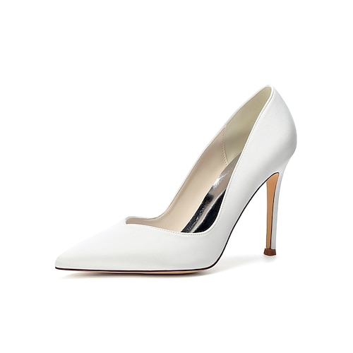 Décolleté da donna bianche con tacco a spillo decorate con cristalli, eleganti scarpe con tacco alto per la madre della sposa per matrimoni in città, scarpe eleganti a punta scintillanti per la sera