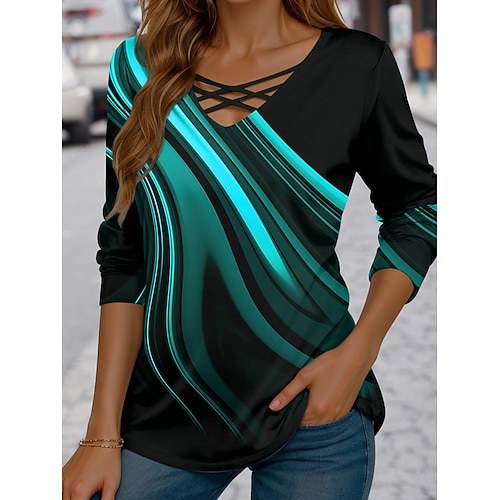 Per donna Maglietta Grafico Geometrico Vintage Elegante Casual Manica Lunga Scollo a V Top Regolari Quotidiano Taglio Stampato Blu Rosso Blu Reale Viola Verde Primavera Autunno