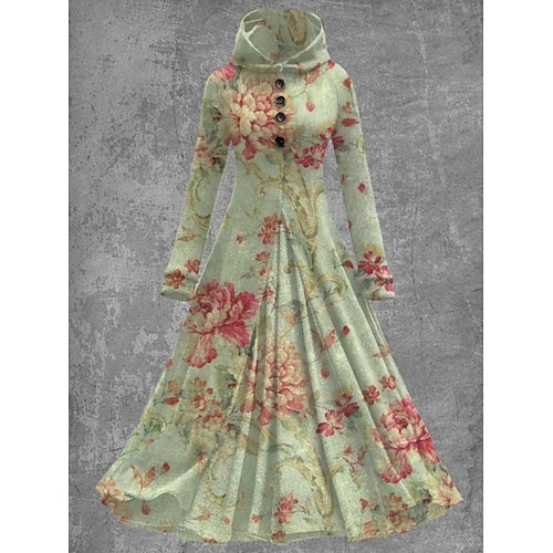 Per donna Abito maxi Abito a trapezio Casual Quotidiano Vestibilità regolare Floreale Manica Lunga Con Cappuccio Blu reale Blu Azzurro cielo Verde Primavera Autunno